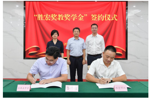 签约仪式上,CEO赵总代表公司与惠阳五中付校长签订设立“金年会奖教奖学金”协议。从2020年起至20205年,金年会每年捐赠惠阳五中50万元,支持学校建设和发展。其中,40万元用于奖励该中学当年在区级及以上的学年度期末考试、各类调研模拟统考、中考、高考复习备考等工作中爱岗敬业、教育教学成绩优异、立德树人等方面有突出贡献的教师和学校行政人员,另外10万元用于奖励该校当年在区级及以上的学年度期末考试统考、各类调研模拟统考、中考或高考中品学兼优的学生。