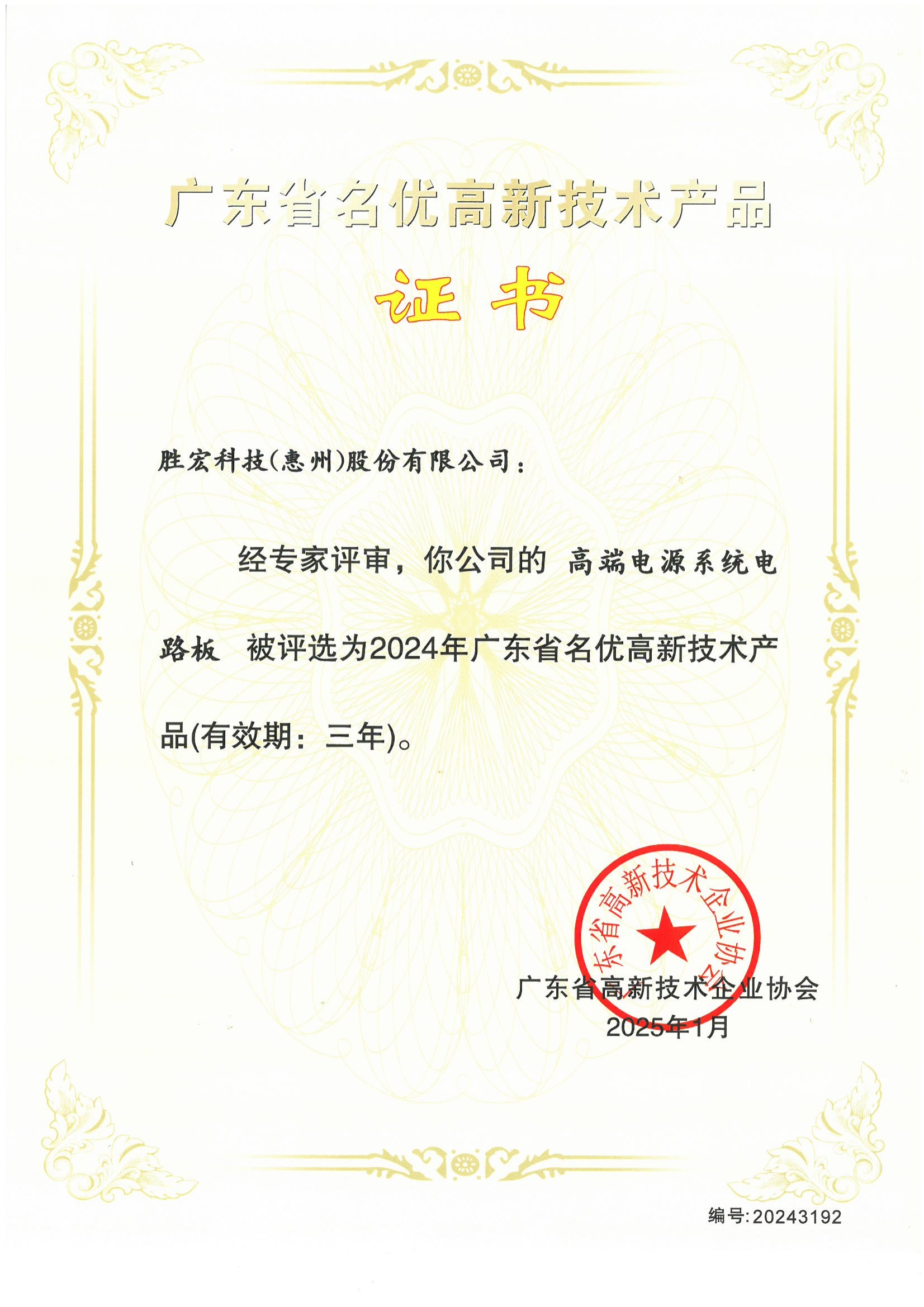 “高端电源系统电路板”高新技术产品证书